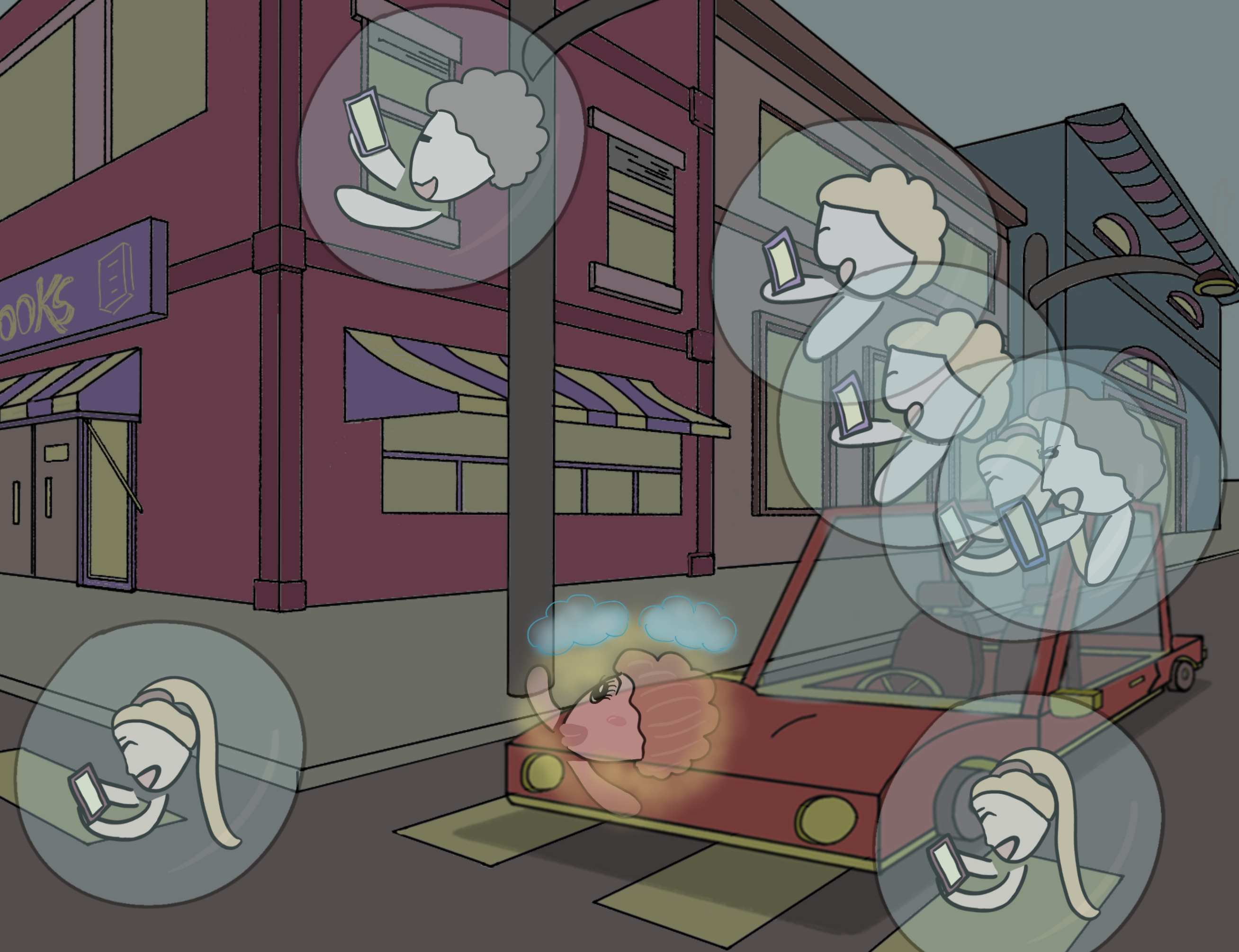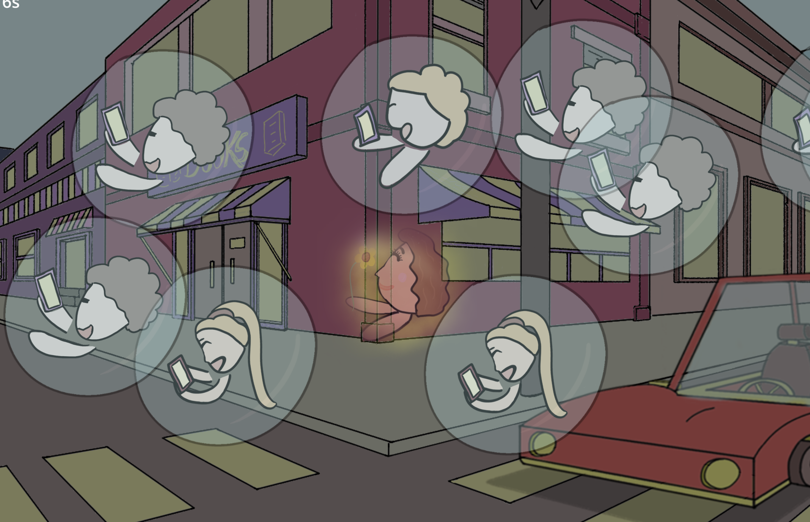 I see people in real life in a bubble of their own, in any public place everyone's sticking their face in their phones, not that they are unhappy or anything they are just so much in a bubble, and it would be fun to burst those bubbles into lovely beautiful feelings around us.